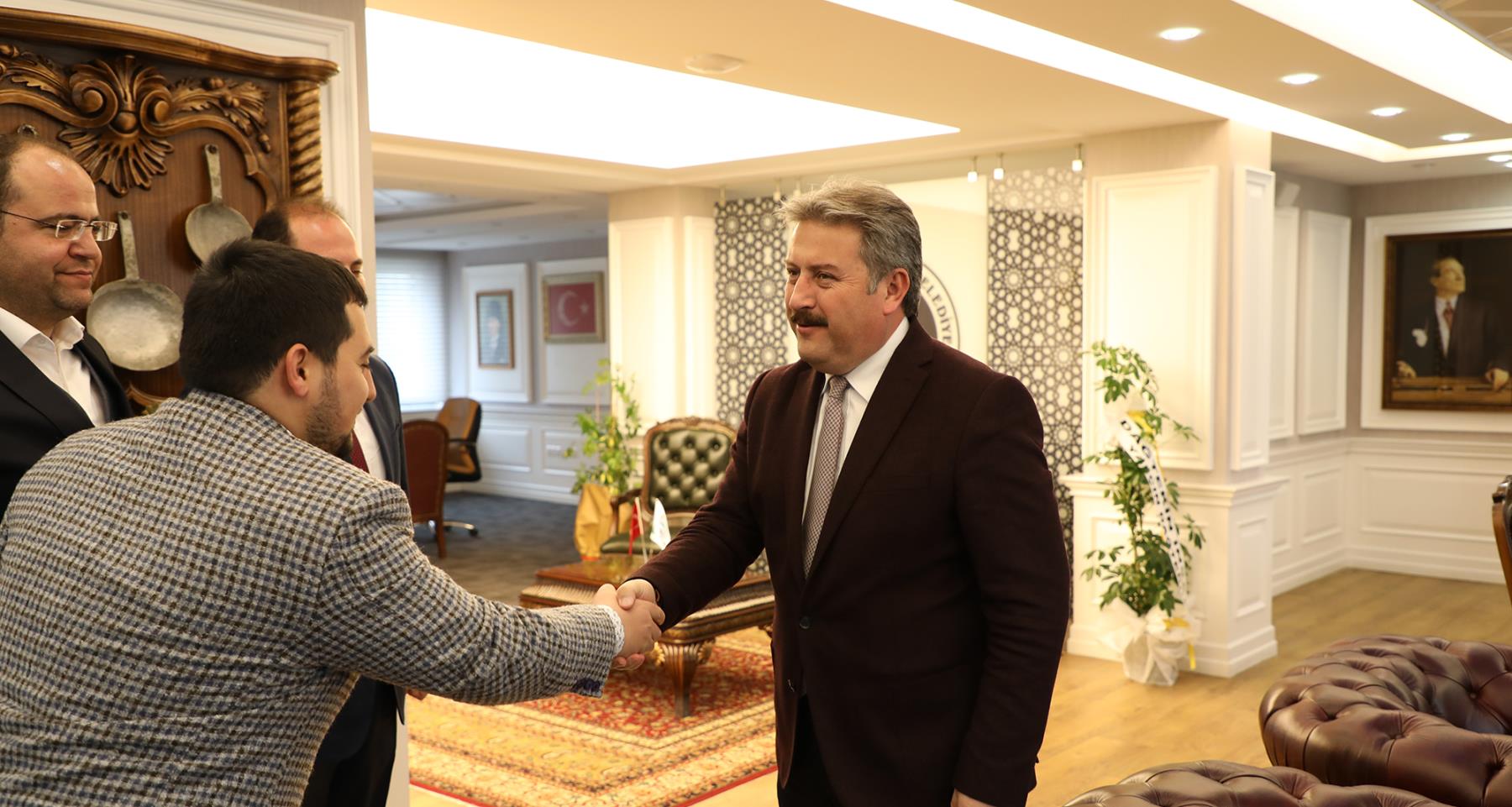 KAYSERİ Mobilya Sanayicileri Derneği (KAYMOS) Başkanı Mehmet Yalçın ve Yönetim Kurulu Üyeleri Melikgazi Belediye Başkanı Dr. Mustafa Palancıoğlu’nu ziyaret ederek hem tebrik etti, başarı dileklerini sundular hem de dernek çalışmaları hakkında bilgiler verdiler.