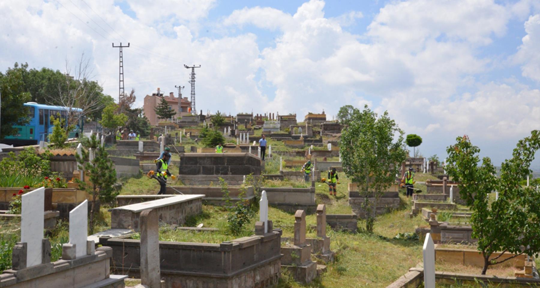 Melikgazi Belediyesi, Kurban Bayramı’nda yoğunluk yaşanan mezarlıklarda vatandaşların rahat edebilmesi için bir dizi önlem alıyor.