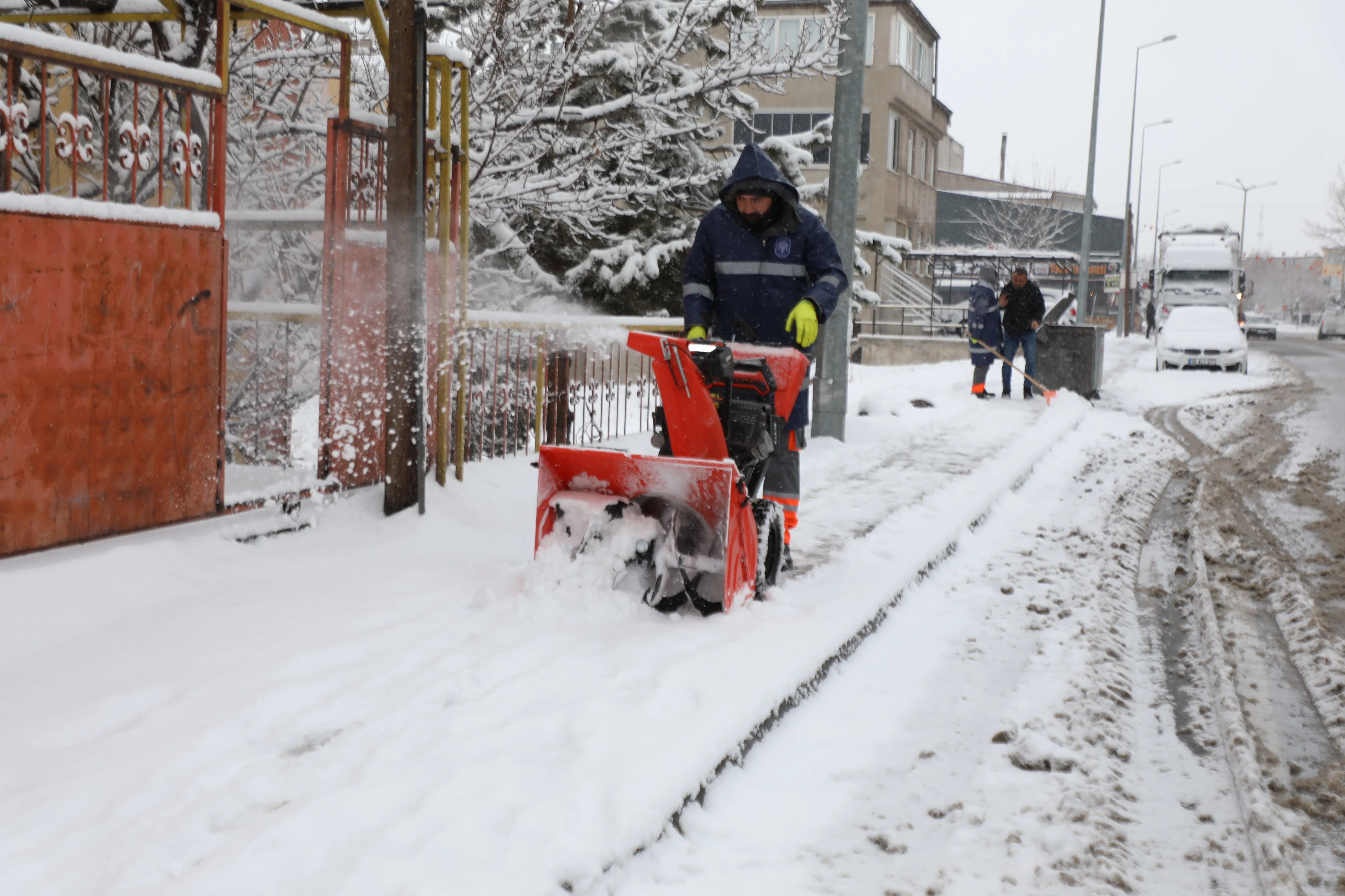yağışının başlamasıyla birlikte geceden beri kar temizliği çalışması yapıyoruz.