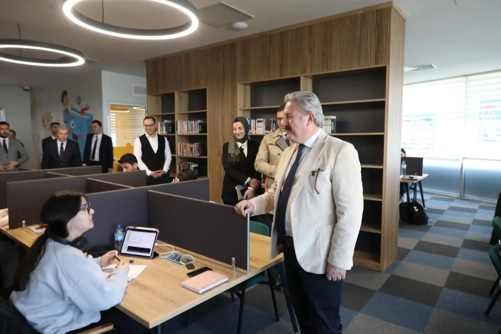 Melikgazi Belediye Başkanı Doç. Dr. Mustafa Palancıoğlu, Tınaztepe Sosyal Tesisleri’nde eğitim gören KPSS, okuma-yazma kursu ve E-KPSS kursiyerlerini ve Tınaztepe Akıl Küpü Kütüphanesi’ni ziyaret etti.