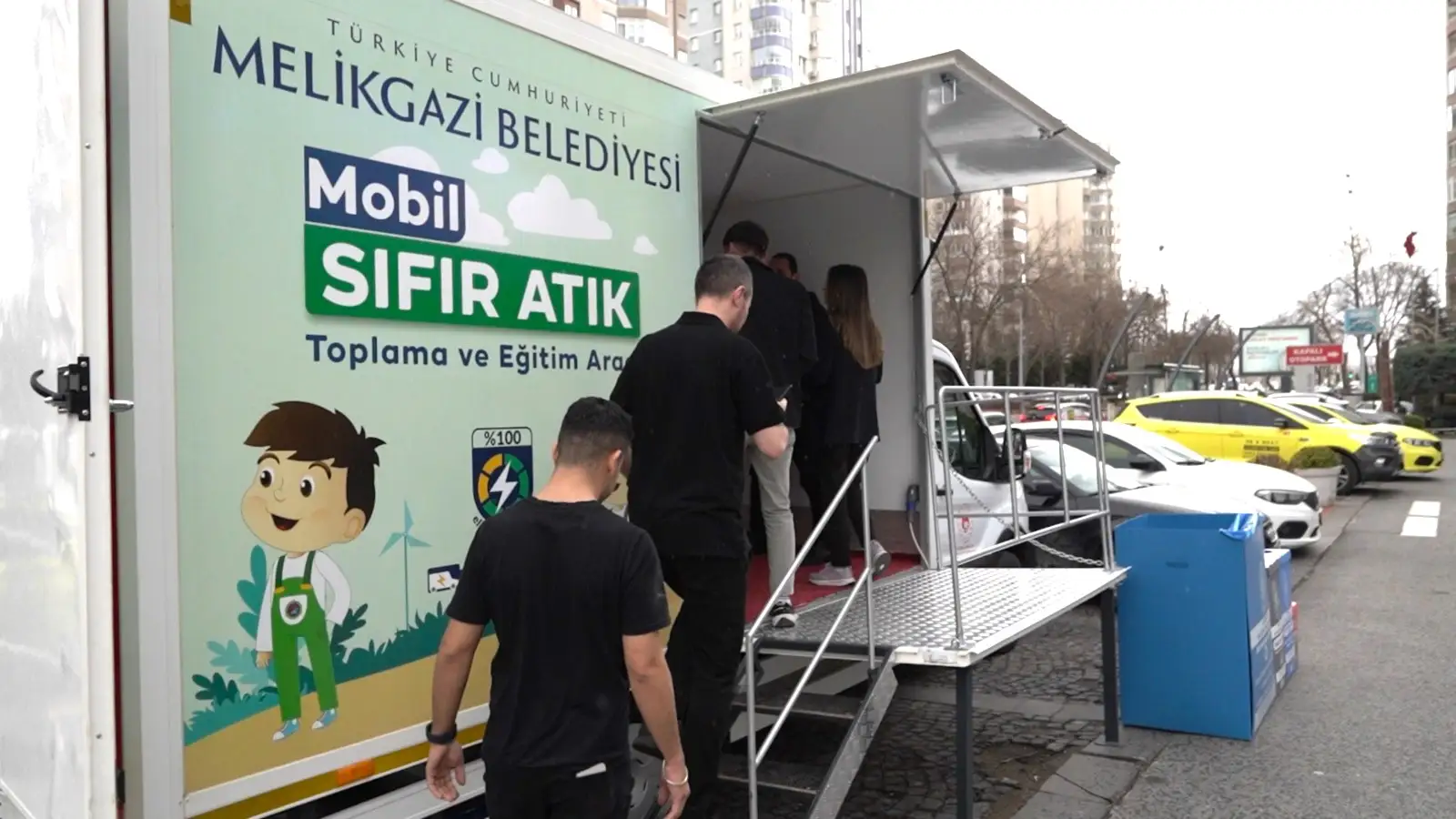 Program sonrası Melikgazi Belediyesi İklim Değişikliği ve Sıfır Atık Müdürlüğü yetkilileri mobil sıfır atık toplama ve eğitim aracında, Melikgazi Belediyesi’nin örnek gösterilen tesisi, sıfır atık çalışmaları, eğitimleri, sıfır atık ve toplama-ayrıştırma ile ilgili vatandaşlara bilgiler verdi.