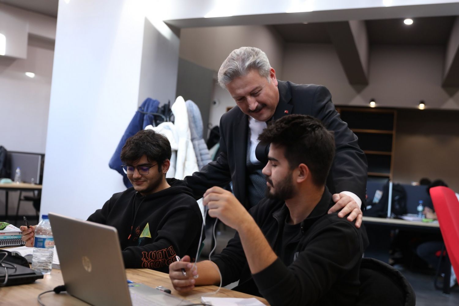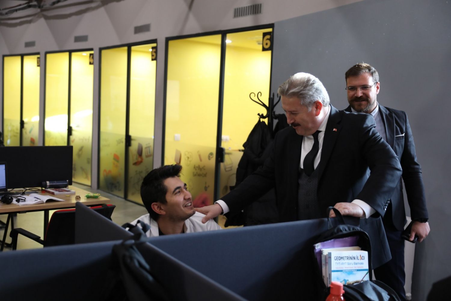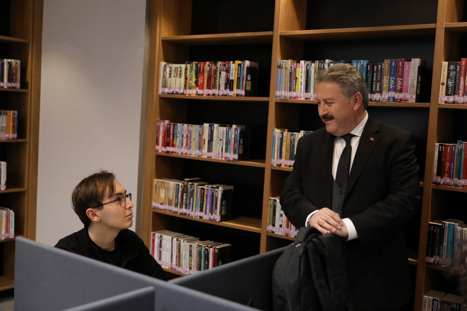 Assoc. Prof. Dr. Mustafa Palancıoğlu, the Mayor of Melikgazi, visited the Akıl Küpü Library located in the Municipality Service Building and met with students studying there.