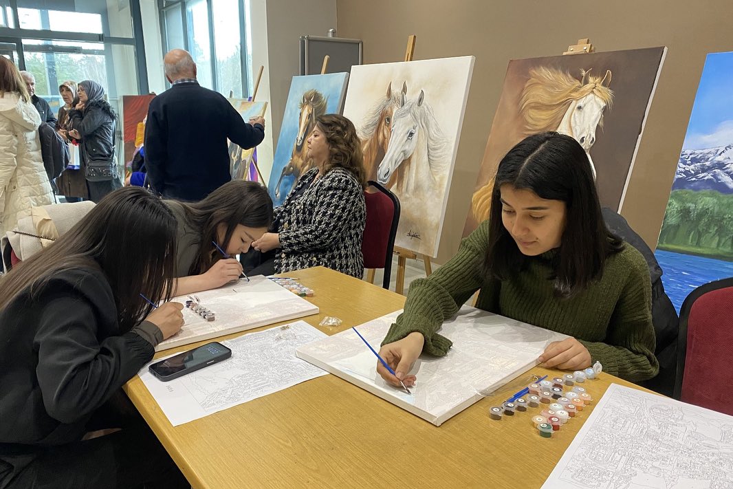 At the end of the program, the art exhibition was inaugurated, and women had the opportunity to experience painting at the painting workshop.
